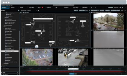 Smart Map enables security operators to see the whole picture across all sites with instant access to any camera and sensors, all connected with precise geo-location.