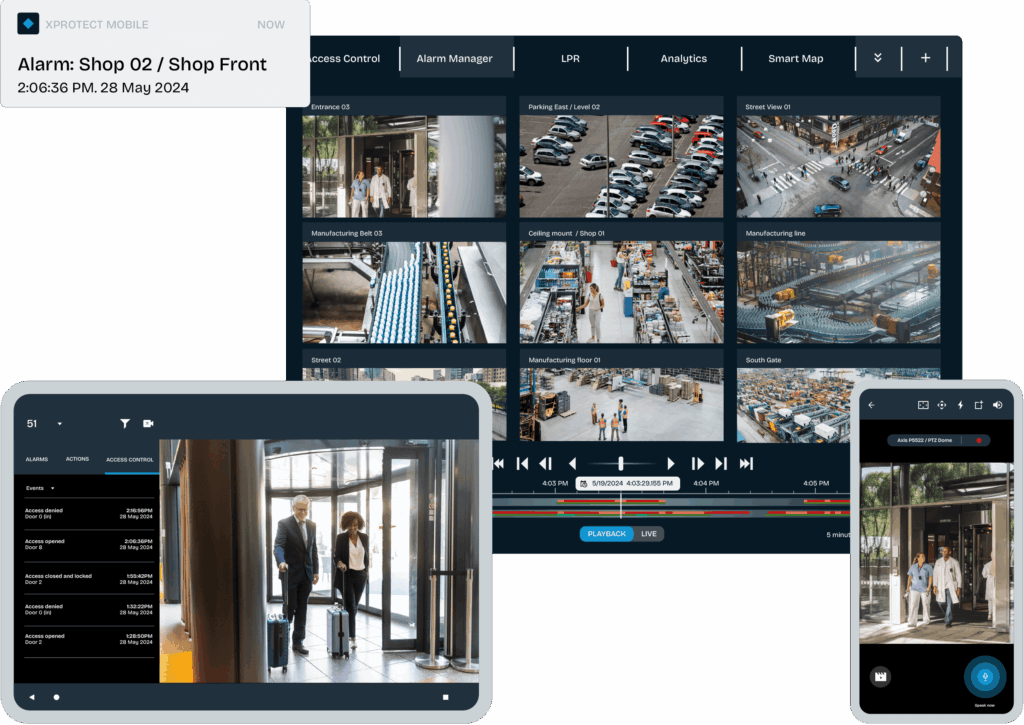 With XProtect as the backbone of your security systems, you can tailor, scale and simplify your video surveillance — all from one centralized platform.